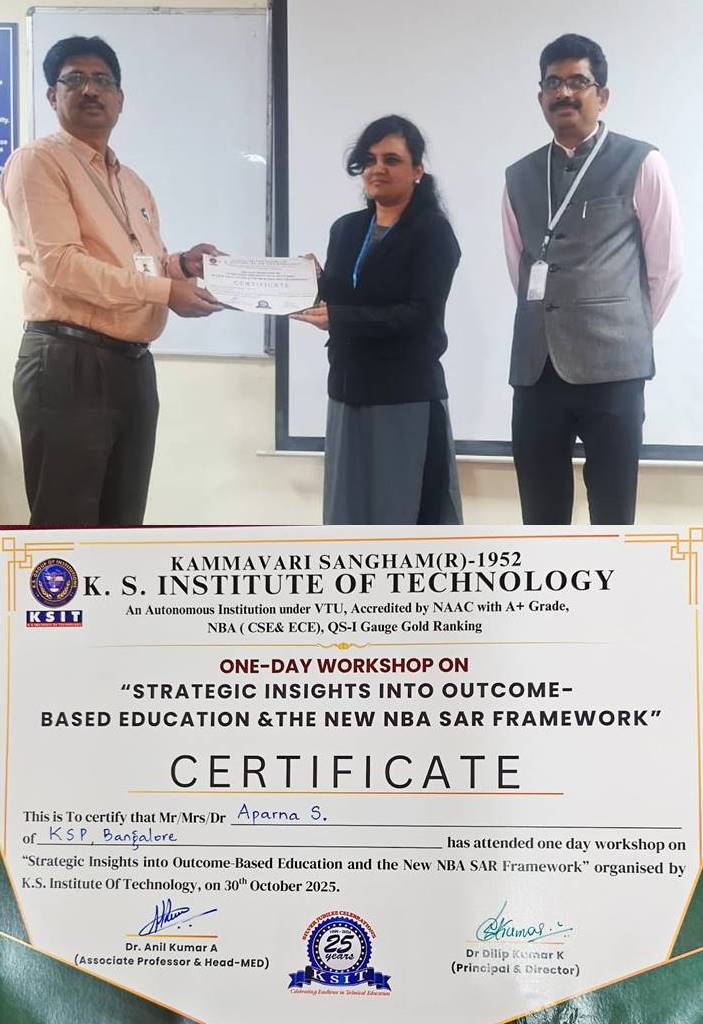 Mrs. Aparna S - Attended a workshop on Strategic insights into OBE [view here]