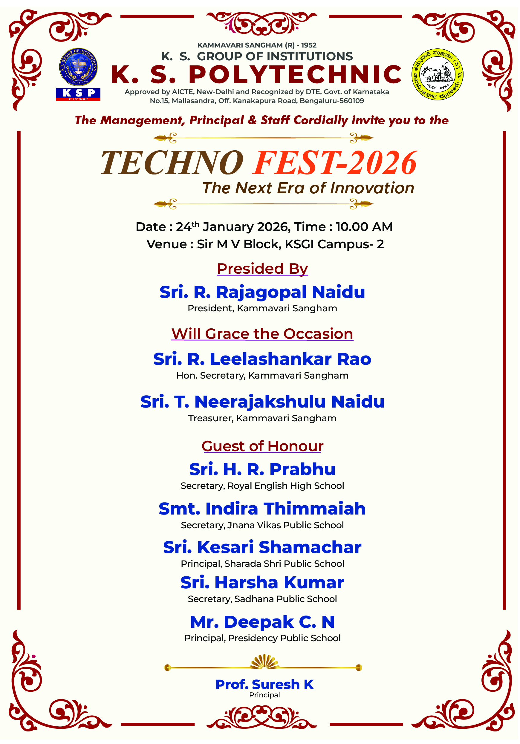 a vision of providing hi-tech facilities as per the current technical trends and growing needs of the students K S Polytechnic was shifted to KSGI Campus - 2 at #15,