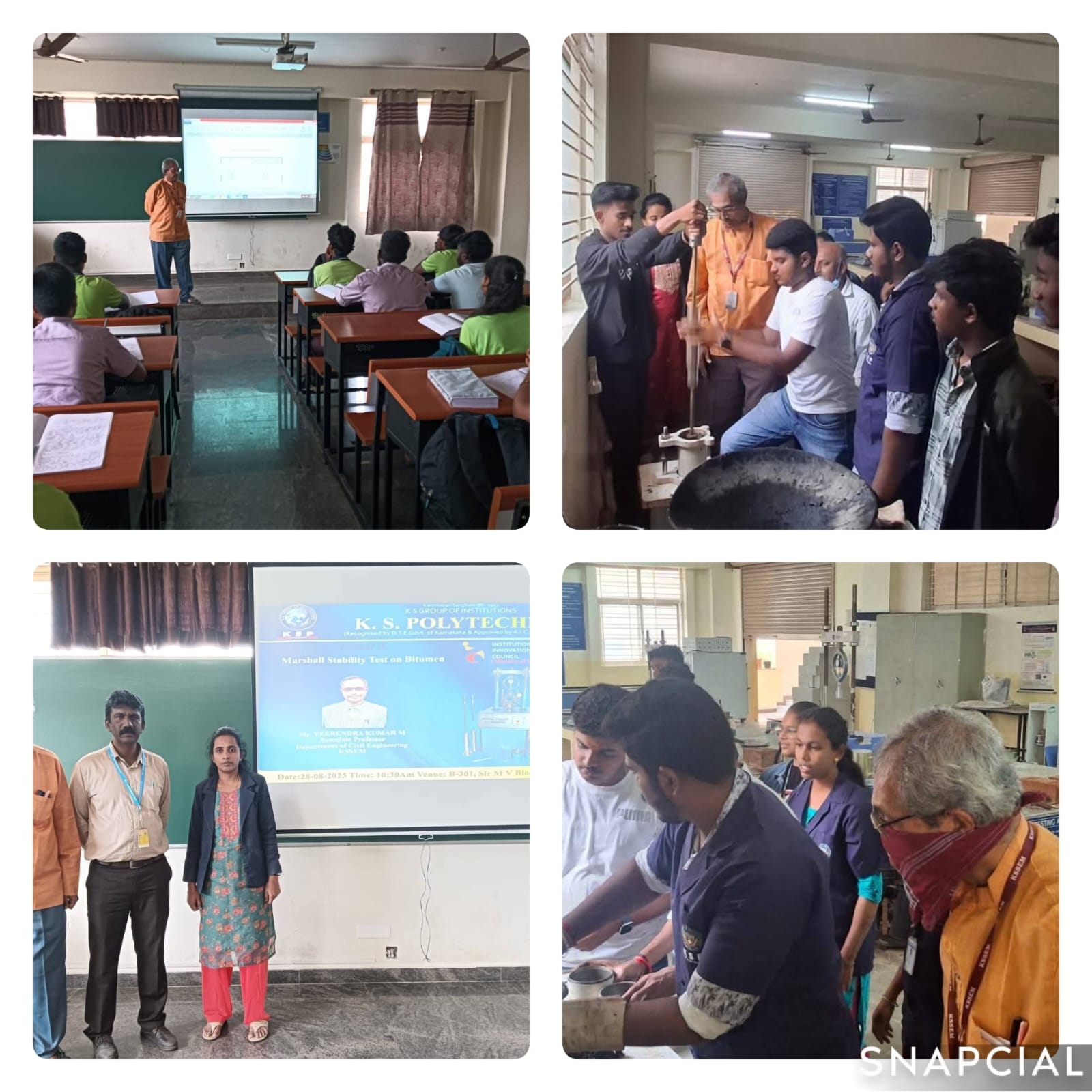 " Workshop on Marshall Stability Test on Bitumen was successfully conducted for our final-year students by esteemed resource person, Associate Professor Veerendra Kumar Sir, Dept. of Civil Engineering, KSSEM."